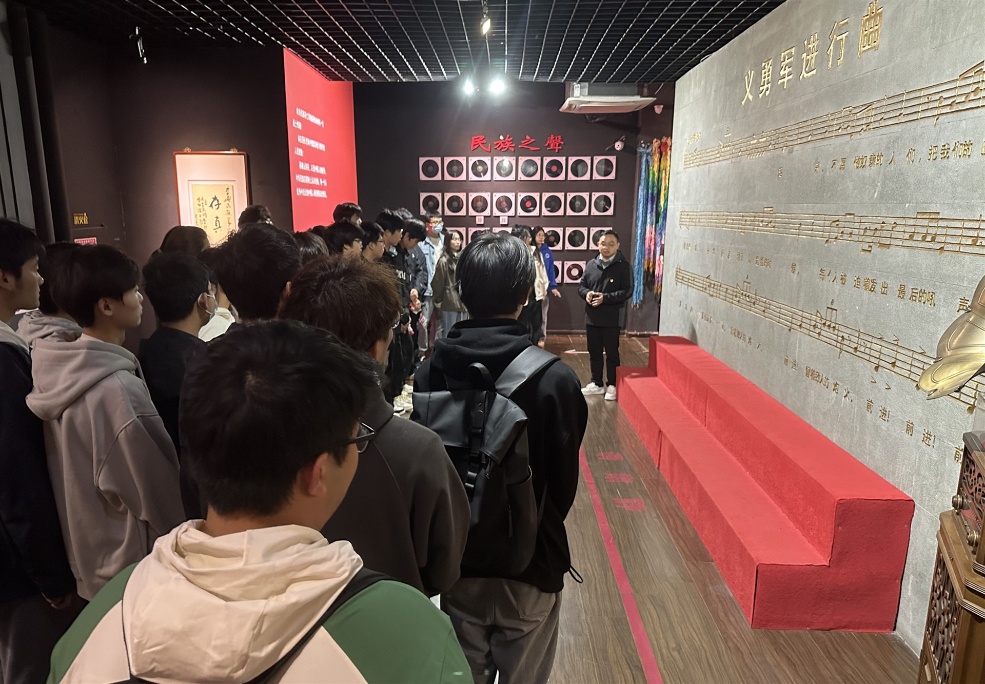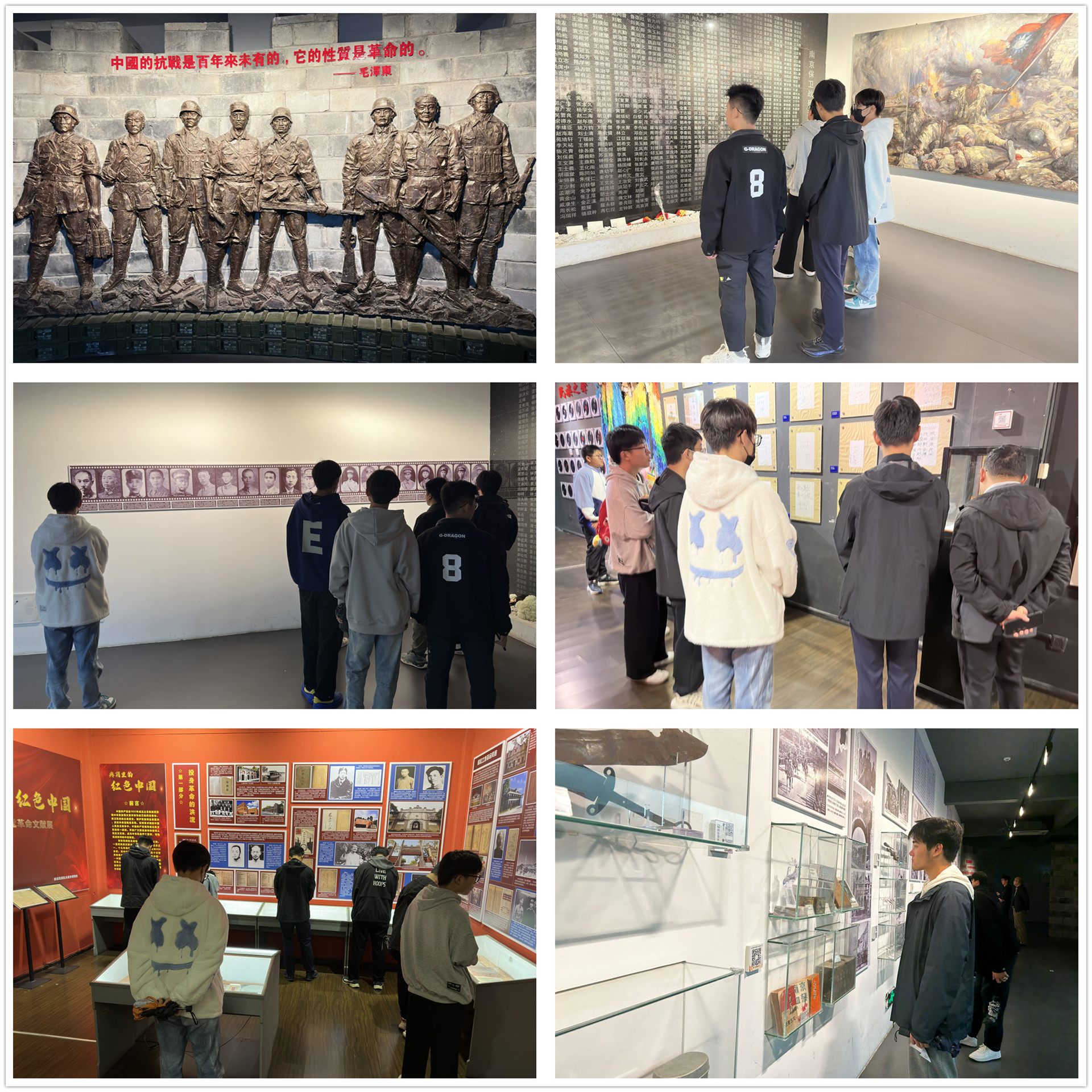 走进南京民间抗日战争博物馆,电子与信息技术系学生在《南京保卫战》主题展厅前瞻仰抗战期间的实物遗存,陈列厅包括“1937南京记忆”“不愿做奴隶的人们”“抗战风云”“抗战文献”“抗战徽章”等几部分,迎门镌刻有巨幅《义勇军进行曲》词谱。辅导员何华智老师与学生共同聆听《义勇军进行曲》,给学生带来了一堂“铭记历史,吾辈当自强”的微党课,“中国人民经过14年不屈不挠的浴血奋战,打败了日本军国主义侵略者,才取得了中国人民抗日战争的伟大胜利。”看着这些来之不易的史料,提醒着全体同学们要铭记历史,勿忘国耻。