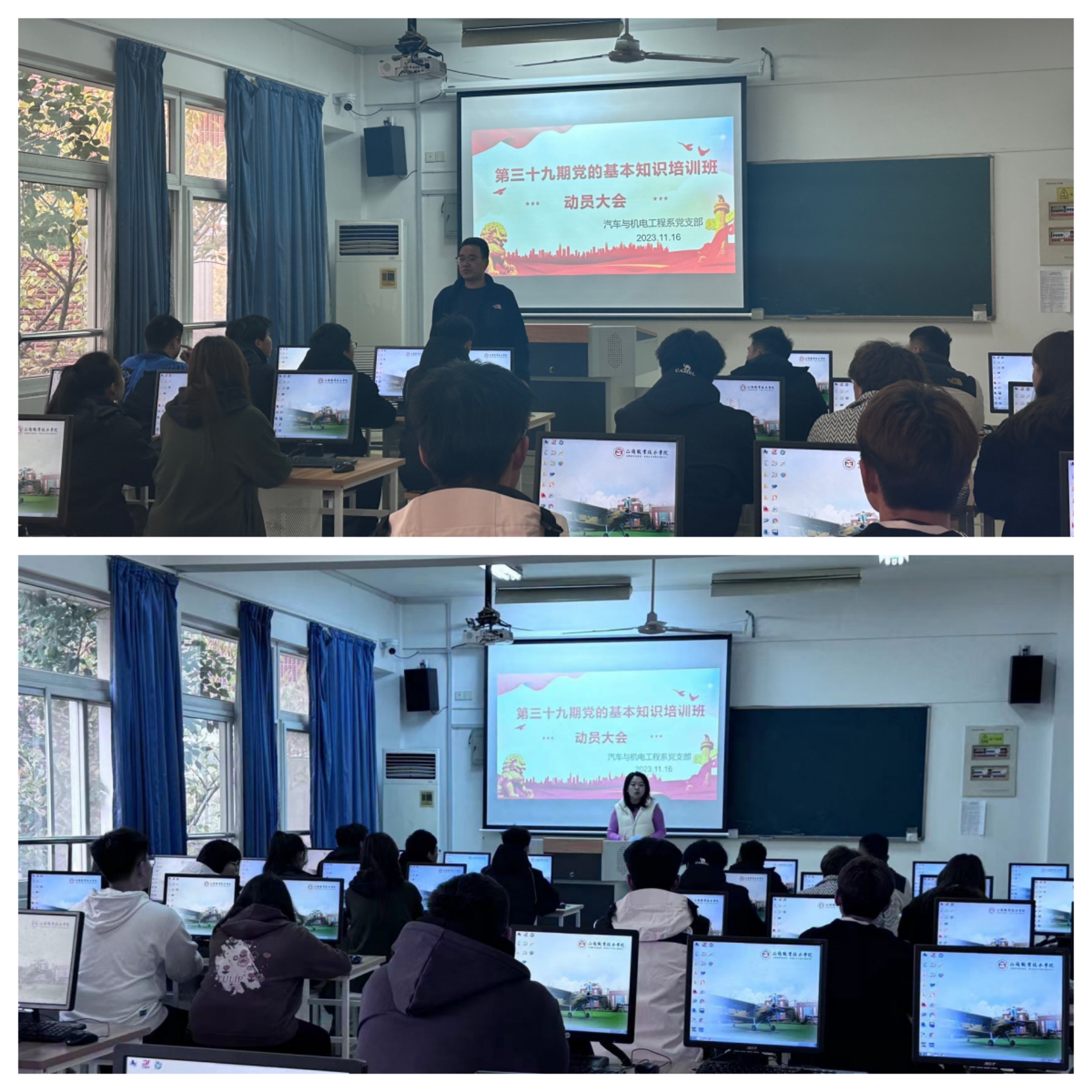 2023年11月16日下午14点,汽车与机电工程系党支部在7205教室召开了第39期党课培训动员大会。汽车与机电工程系党支部书记朱翔出席会议,全体学员参会。会议由汽车与机电工程系组织委员杨慧艳老师主持。