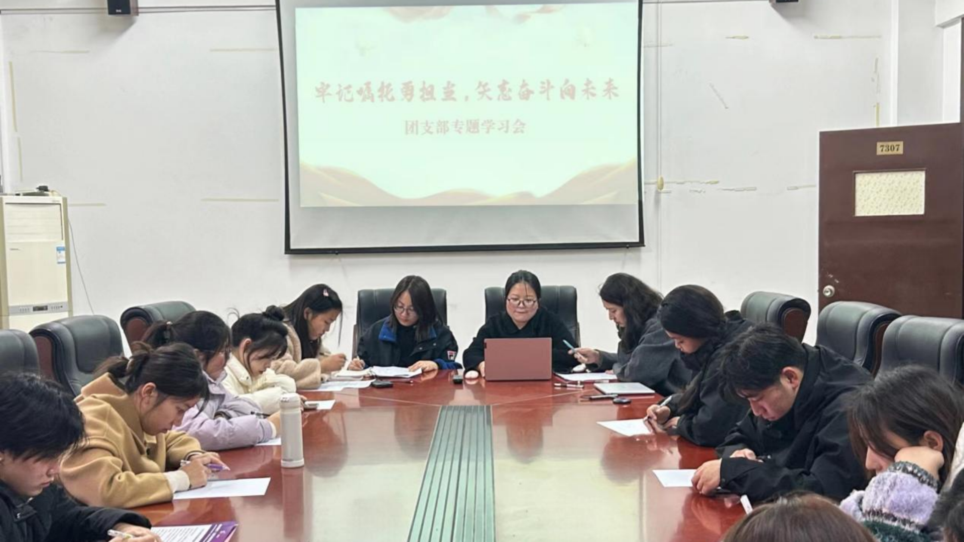 最后,在辅导员的指导下,各团支部书记在会议室、教室、一站式社区党团活动室等地引领全体团员青年学习相关内容。本次主题团日活动的开展,进一步坚定了全系团员青年的理想信念,引领全系团员青年坚定信心、鼓足干劲、振奋精神,踔厉奋发。