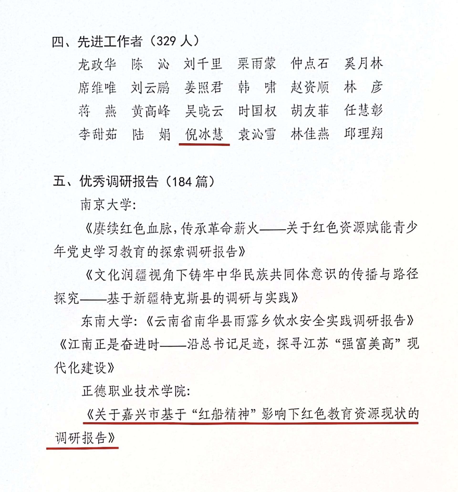 近日,江苏省委宣传部、江苏省文明办、江苏省教育厅、共青团江苏省委、江苏省学生联合会发布了《关于公布2023年全省大中专学生志愿者暑期文化科技卫生“三下乡”社会实践活动先进集体和个人名单的通知》,春满四合院 成果突出,多个集体和个人在活动中受到表彰。院团委荣获2023年江苏省“三下乡”社会实践活动先进单位;电子与信息技术系“抒青春护国情,筑爱国强军梦——夏日之萤国防寻梦小分队”荣获2023年江苏省“三下乡”社会实践活动优秀团队;艺术设计与建筑工程系《关于嘉兴市基于“红船精神”影响下红色教育资源现状的调研报告》荣获2023年江苏省“三下乡”社会实践活动优秀调研报告;经济与管理系团总支书记倪冰慧荣获2023年江苏省“三下乡”社会实践活动先进工作者称号;民用航空系张琦同学、基础教育系马语笛同学荣获2023年江苏省“三下乡”社会实践活动先进个人称号。