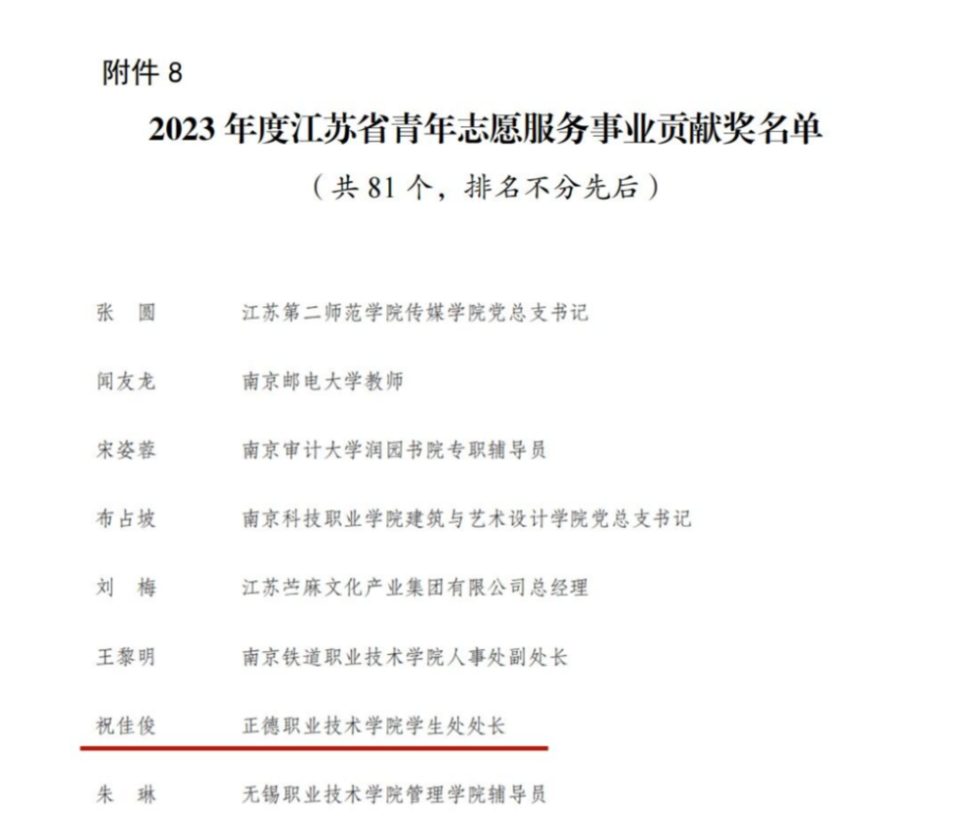 3月11日,江苏省青年志愿者协会下发《关于公布2023年度全省青年志愿者行动先进典型评选结果的通知》,对2023年全省青年志愿者行动先进典型进行表彰,春满四合院 “点亮童心 与爱同行”志愿服务项目荣获江苏省优秀青年志愿服务项目;学生处处长祝佳俊荣获江苏省青年志愿服务事业贡献奖;经济与管理系吴李留洋同学荣获江苏省优秀青年志愿者称号。