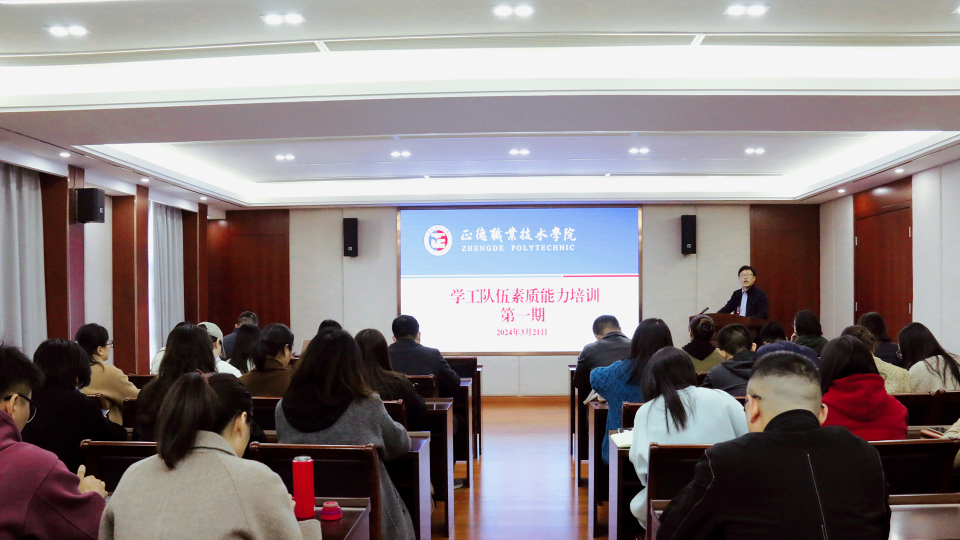 为进一步明晰新形势下大学生思想政治工作的新任务和新要求,全面提升春满四合院 学工队伍素质能力,拓宽知识视野、创新方法途径、增强育人效果,3月21日学院在5201会议室开展2024年第一期学工队伍素质能力培训。本次培训邀请到了“2022年江苏省最美高校辅导员”、南京航空航天大学学生处教育科科长侯新闻,党群工作部部长祖国,分别围绕辅导员职业发展和如何做好高校意识形态工作两个主题进行。会议由学生处处长祝佳俊主持,各系学生工作负责人、全体辅导员和学生处全体工作人员参会。