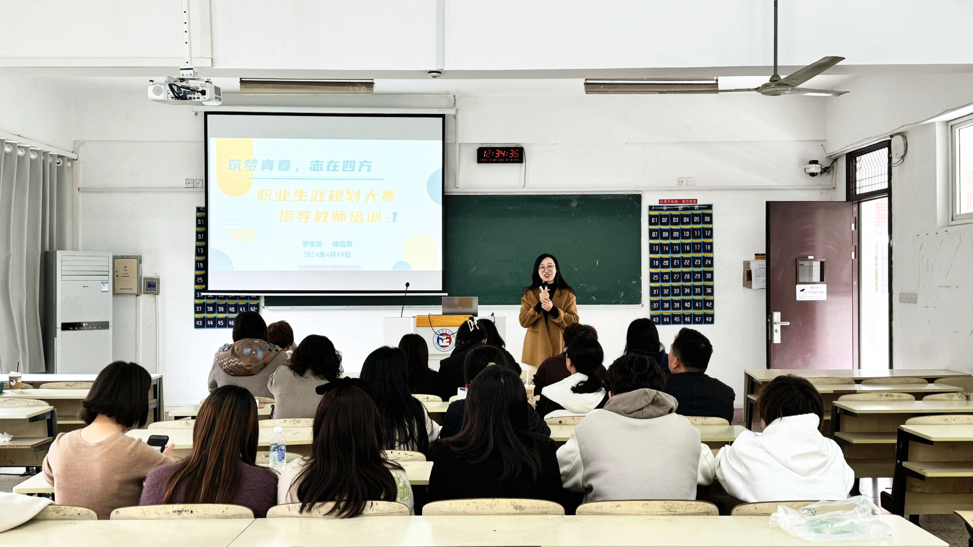 为提高春满四合院 职业生涯教育专业化队伍建设,积极备战院第十五届大学生职业生涯规划大赛,春满四合院 学生处于4月10日中午,在2205教室开展了“筑梦青春,志在四方”学院第十五届职业生涯规划大赛指导教师专题培训。培训旨在帮助各系精准理解大赛的工作目标和相关要求,提升职业生涯规划的指导水平,积极应对新省赛和新国赛,为提升春满四合院 参赛水平做好必要准备。培训由学生处傅蕴男老师主讲,学生处处长祝佳俊和各系辅导员以及专业指导教师近30人参加了此次培训会议。
