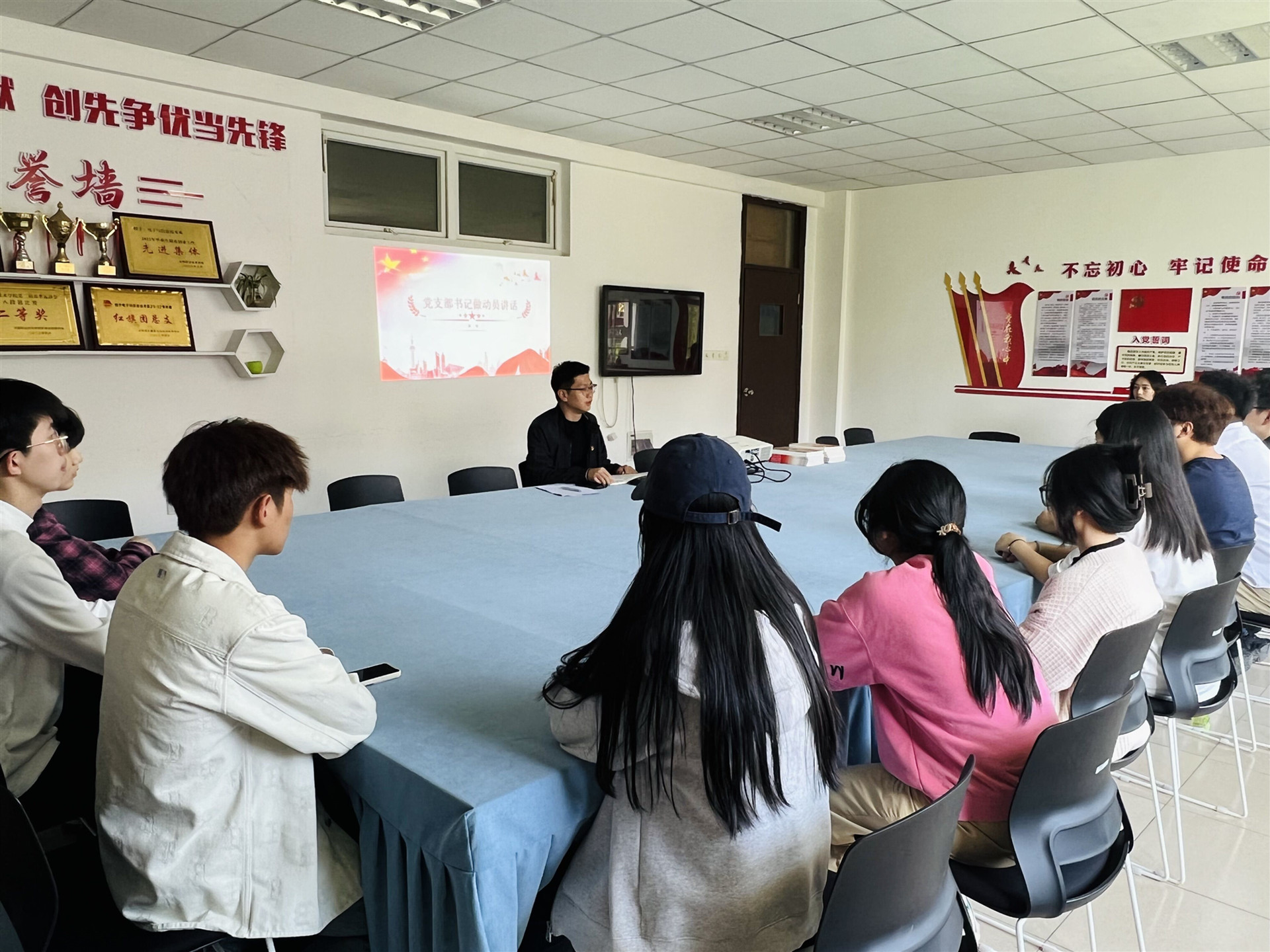 4月18日,电子与信息技术系召开第40期党的基本知识培训班动员大会。参加此次动员大会的有电子与信息技术系党支部书记赵欣、组织委员刘敏婧、以及入党积极分子15名。大会由刘敏婧主持。