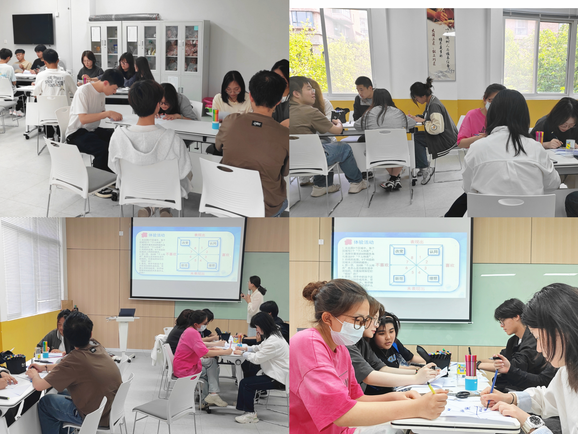 紧接着,樊老师为同学们详细阐述了本期阅读的心理书籍《被讨厌的勇气》,她剖析了书中的要义和精华,使同学们对阿德勒的思想有了更清晰的认知。在樊老师的引导下,同学们借助分组讨论、角色扮演、模拟对话等方式,开始对书中那些引人深思的观点进行思索,例如如何摆脱过去的枷锁、怎样获得真正的自由等内容。同学们兴致勃勃地在书籍中寻找自己最有感触的语句,然后以小组为单位展开学习分享。在交流过程中,大家分享着各自的感受,仿佛身临其境,与故事中的角色一同经历了一场心灵的疗愈。