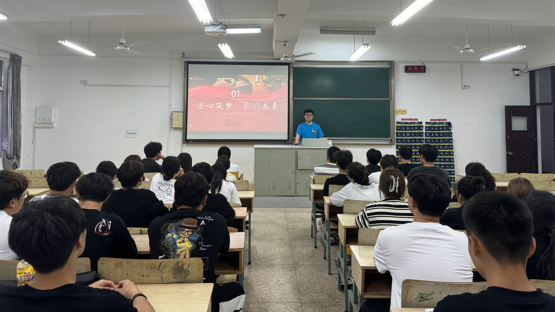 在校内,各团支部统一步调,共同搭建学习分享平台,积极开展线下交流研讨会。在研讨会上,团员青年们以新时代榜样模范工匠事迹为依托,深刻理解了“创新中国”的现实需要,学习了“执着专注、精益求精、一丝不苟、追求卓越”的工匠精神内涵。同学们积极分享了各自对于“新时代青年如何技能报国”的思考与见解。
