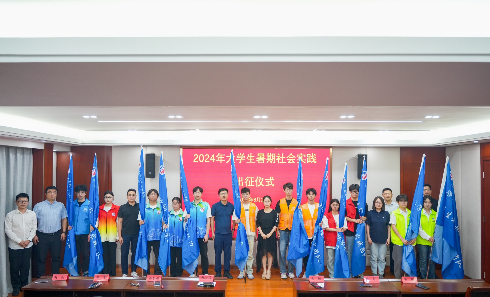 6月21日,春满四合院 “青春为中国式现代化挺膺担当”2024年大学生暑期社会实践出征仪式在5201会议室举行。党委学工部部长祝佳俊、各系党支部书记、社会实践团队指导老师、学生代表参加仪式,仪式由团委副书记魏兴彪主持。