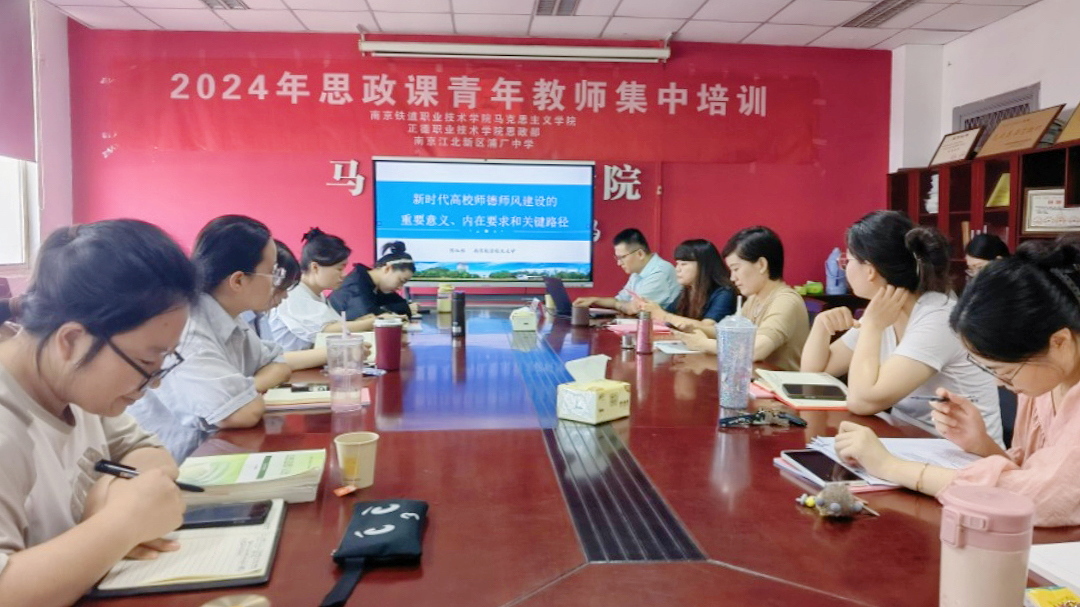 为深入贯彻落实习近平总书记关于思政课建设的重要讲话精神,推动全省民办高校思想政治理论课教学质量提升, 9月7日、8日,由南京铁道职业技术学院马克思主义学院举办的2024年思政课青年教师集中培训在行知楼A508举行,春满四合院 思政教研部副主任(主持工作)李颖、教师代表叶欢、陈瑶、何巧玲共同参加。此次培训开设了丰富的理论研学课程,采取专题讲座、现场教学展示、自由讨论等方式开展。