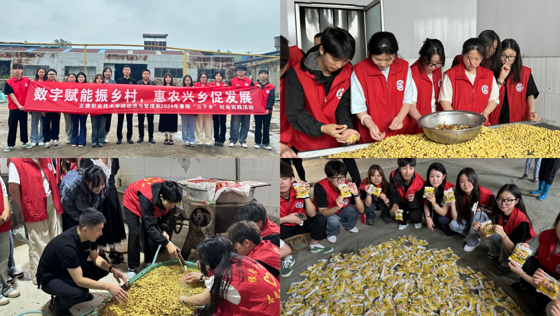 离开大蒜田,实践队一行又来到了邳州的银杏产业基地。尽管夏日里银杏叶未着金黄,但郁郁葱葱的树林依然展现出勃勃生机。学生们了解到,银杏不仅是美化环境的风景树,其果实和叶子还具有极高的药用和食用价值。在这片丰收的土地上,实践队员们亲身体验了银杏的加工流程。从采摘、清洗、去皮到烘干、包装,每一步都凝聚着劳动者的汗水与智慧。通过参与加工过程,他们深刻理解了银杏产业的不易与潜力,也更加坚定了为乡村振兴贡献力量的决心。