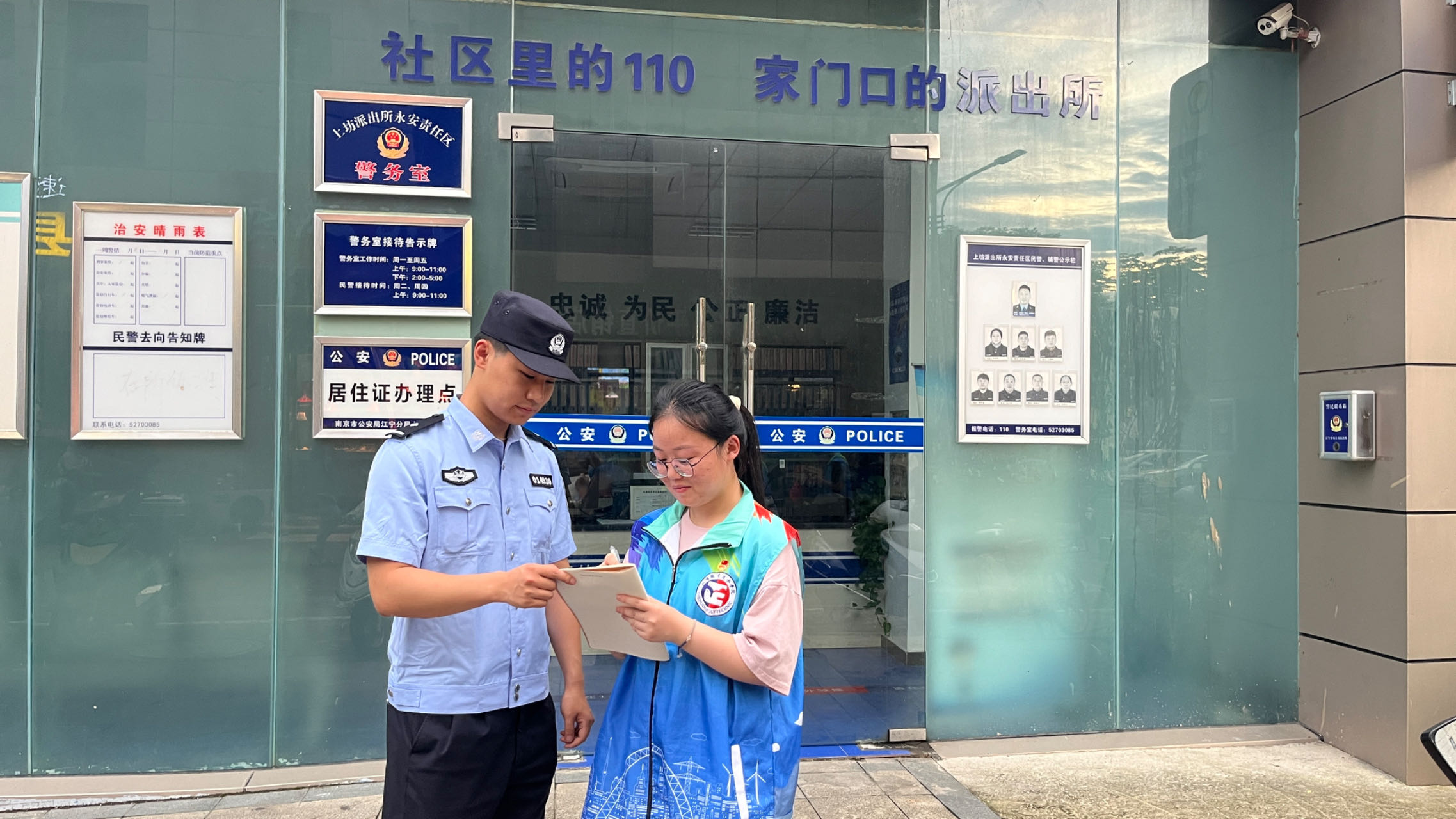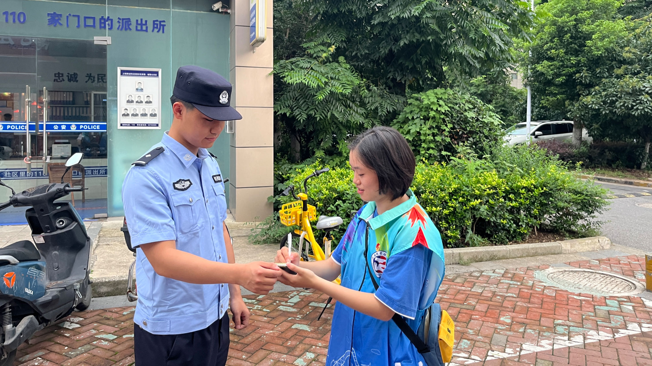 一、民为邦本,本固邦宁。暑期社会实践的队员们来到了社区派出所。公安工作贴近人民生活,做公安工作要讲究认真、严谨、负责,要做到把人民群众的小事当大事,把人民群众的大事儿当实事。受采访的陈警官告诉社会实践队员们:“由于电信诈骗的高发性,反诈中队的日常工作是很繁重的。说是‘两眼一睁,忙到天黑’,一点儿也不夸张。随着国家打击电信诈骗的决心和力度不断加大,国内诈骗团伙被不断铲除、肃清。人民群众的钱袋子有了基本保障,我们为此感到骄傲和自豪。平时的工作主要有出警,走访群众,收案立案等等,人民的事就是我们的事,我们不干谁来干。身为人民警察,付出更多的时间与精力为人民,是我们崇高的信仰与追求。基层工作虽累,但更是我们努力所在。”最后,警官告诉小队员们,“追风赶月莫停留,平芜尽头是春山”不要停下脚步,要一直向前,怀揣着自己心中的理想,坚持的走下去,这样才能实现梦想,有担当有责任。