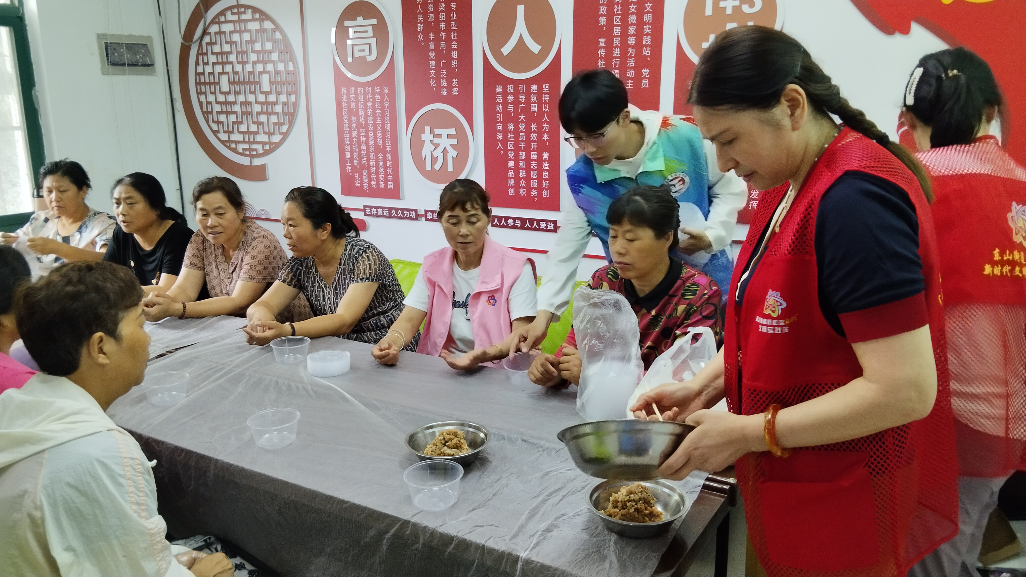 暑假社会实践团队队员们早早就来到新时代文明实践中心活动室,跟随社区工作人员紧锣密鼓地布置包馄饨场所。当洗菜、剁肉馅等相关工作准备完毕后,队员们分工协作,井然有序地和社区工作人员、辖区阿姨们围坐一起边包边聊,其乐融融,不一会儿,桌面上就摆满了一盒盒皮薄馅大的馄饨。包完馄饨之后,队员们分成两队跟随社区工作人员将一份份寄托着满满祝福和真切关怀的饺子送到辖区行动不便的高龄老人手中,询问他们的身体状况和生活情况,叮嘱老人们天气炎热,注意防暑。浓浓的敬老爱老情,随着馄饨的阵阵香味弥漫在心尖,为原本宁静的乡村送去了一番别样的温暖。