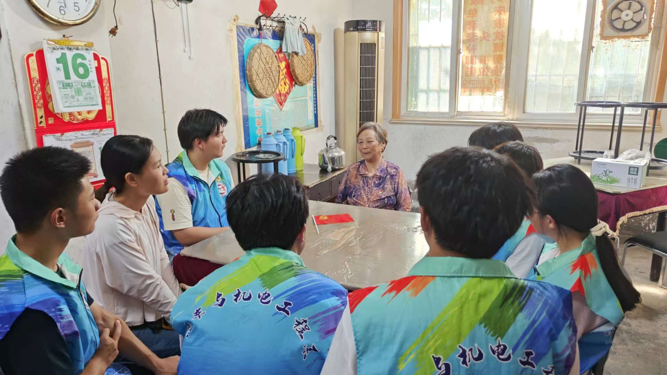 二、组织交流、深化成果。社会实践团队前往潘村,与拥有40年党龄的老党员石同志进行交流学习。老党员言传身教激励学子们奋进,讲述了自己多年来为人民服务的事情,并对在座的队员们寄予深深的厚望。老党员激励学生们要坚定理想信念,勤奋学习,培养坚韧不拔的意志品质。她强调:“党历经风雨,走过了无数艰难险阻,才有了今天的辉煌成就。你们生长在新时代,拥有着无比优越的条件,但也肩负着重大的责任。只有不断充实自己,才能在未来的道路上应对各种挑战,为实现中华民族伟大复兴的中国梦贡献自己的力量。”队员们认真聆听,深受感动和启发。这一活动不仅让队员们感受到了老党员的坚定信念和无私奉献精神,更激励着他们在今后的学习和生活中,以老党员为榜样,不忘初心,砥砺前行。
