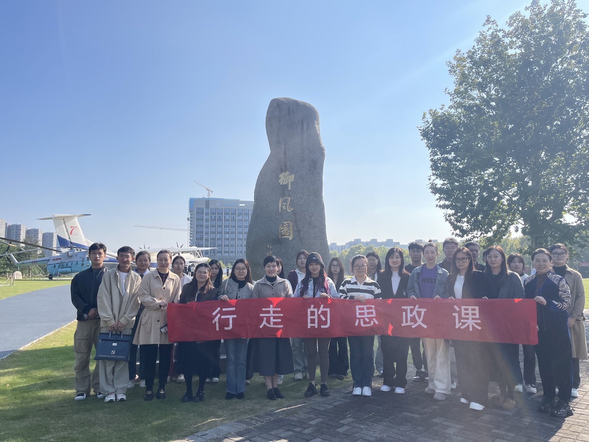 10月24日下午,“四校联盟”在春满四合院 思政教研部的组织下,开展了一堂别开生面的思政实践课。来自春满四合院 、金肯职业技术学院、南京视觉艺术职业学院、钟山职业技术学院近四十名思政课教师与学生代表,共同走进南京航空航天大学御风园博物馆,通过实地参观与现场教学,将思政课堂延伸至户外,开启了一场生动的“行走的思政课”。
