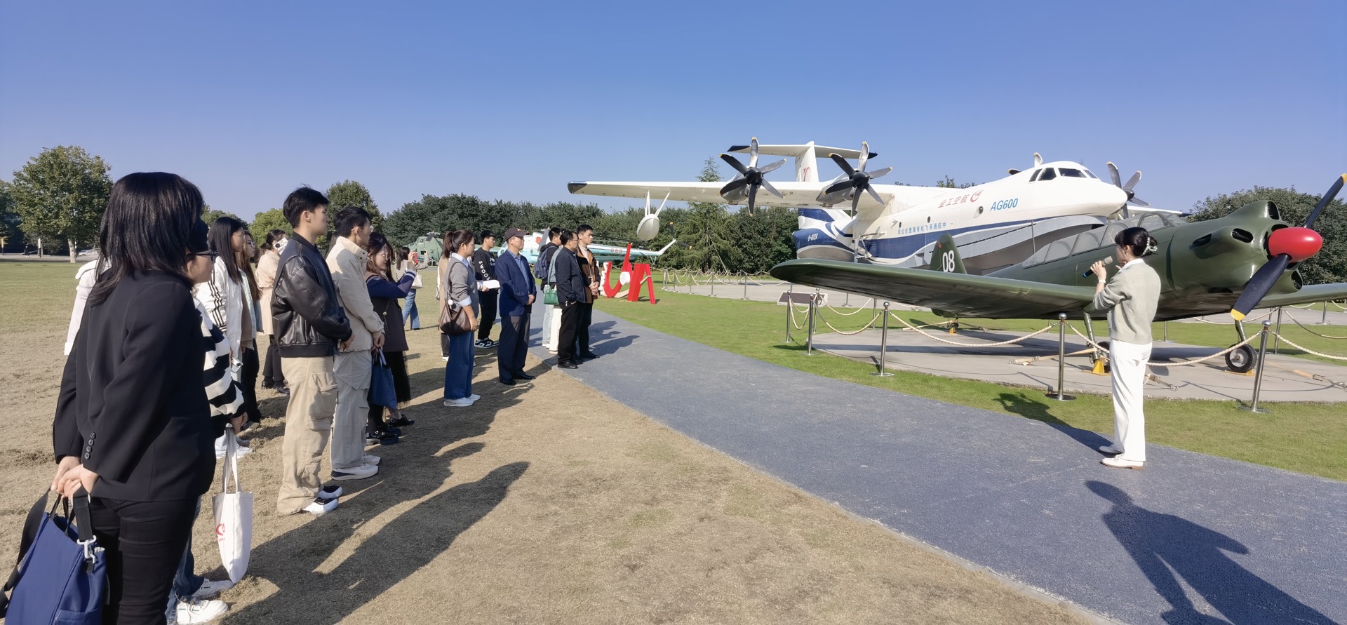 御风园作为南京航空航天大学校园文化的重要载体,蕴含着丰富的航空航天文化与科技创新精神。讲解员为大家讲解了新中国自行生产的第一型飞机初教5、第一架大型无人靶机、我国自行设计制造的歼8和歼-8Ⅱ歼击机、大型水陆两用飞机AG600静力试验机、长征四号运载火箭、参与建国七十周年阅兵的无人机等国之重器背后的故事。每一个展品都成为了思政课的鲜活教材,师生们全方位了解空航天装备、沉浸式感受国防文化,了解了一代代国防工业科技工作者航空报国、敢于奉献的家国情怀。