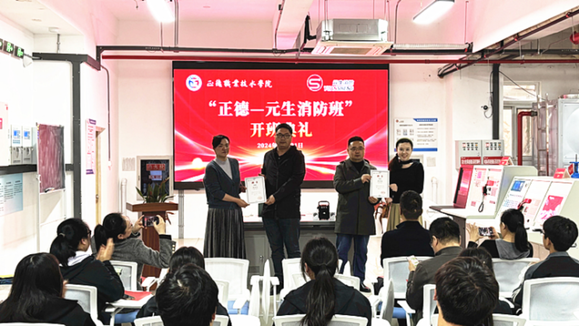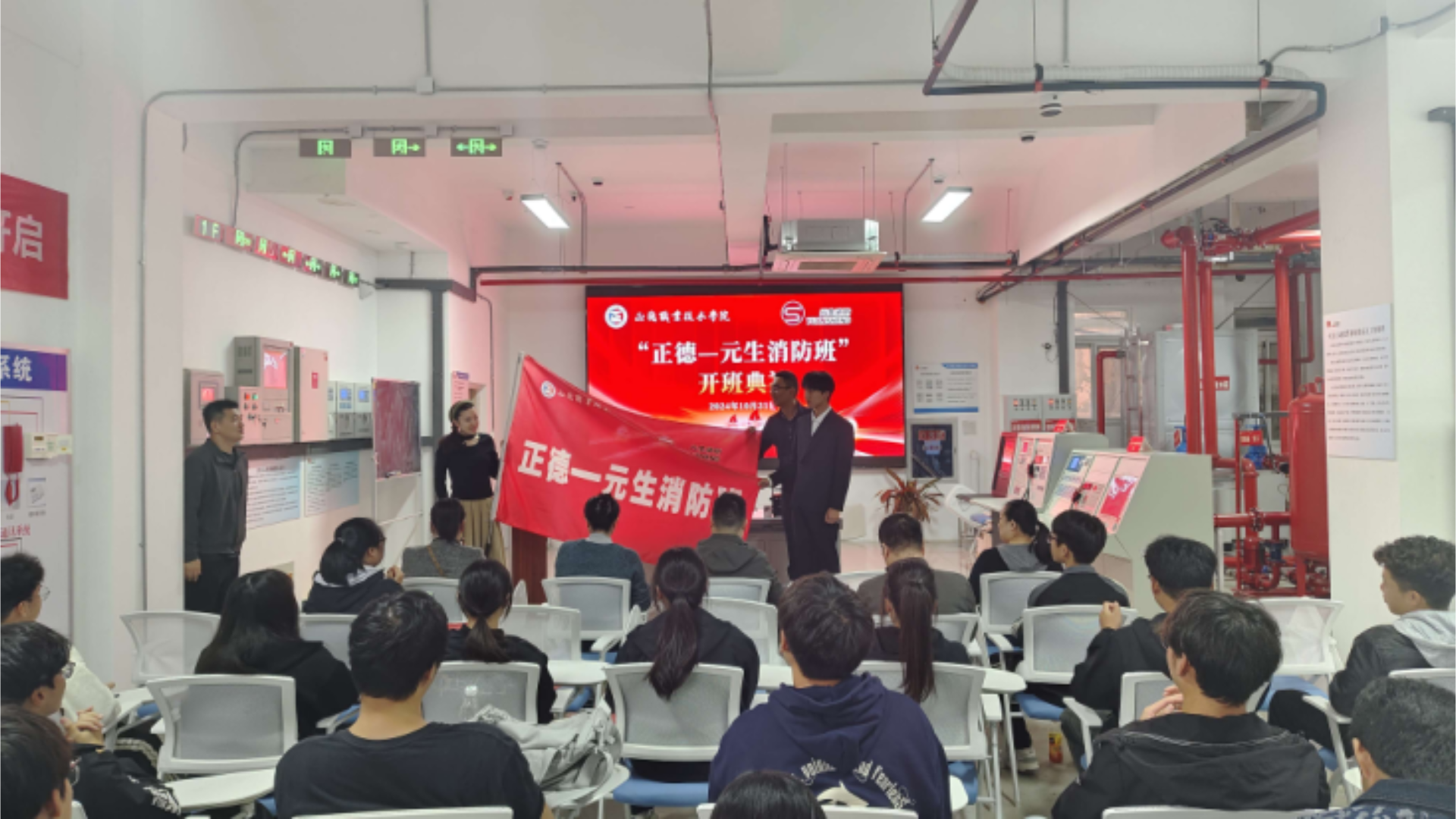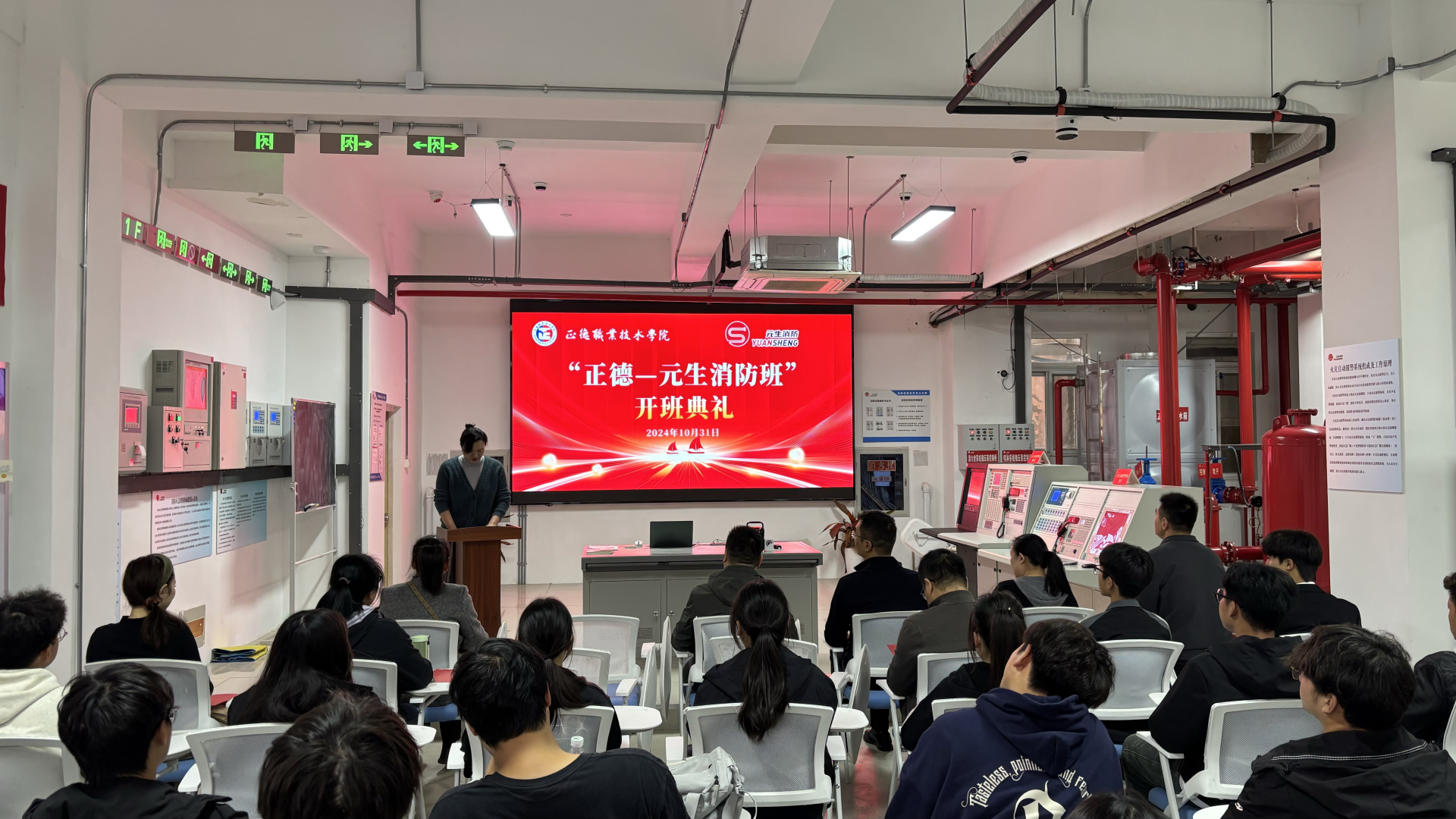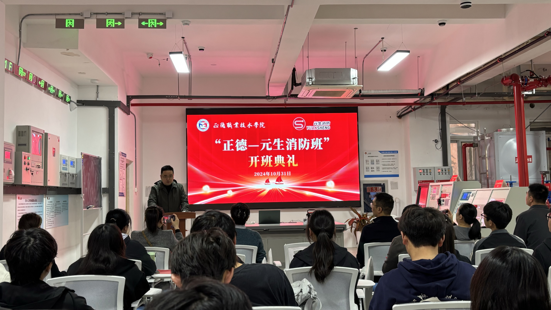 10月31日下午,“正德—元生消防班”开班仪式在正德-元生消防综合实训中心隆重举行。南京元生消防工程有限公司总经理刘臻、副总经理朱雯洁等企业代表、春满四合院 院长助理、招就处处长王墀、汽车与机电工程系系主任任丽君等老师出席活动。典礼由汽车与机电工程系系副主任虞骏卿主持。