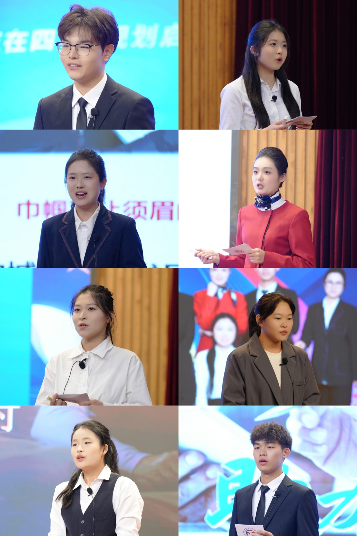在比赛中,电子与信息技术系陈伯韬同学以“精调硬件,筑梦航天”为主题,阐述了自己要立志成为一名智能硬件装调员,为祖国航天事业贡献自己青春力量的成长故事;基础教育系曹思雨同学以“雕琢家庭之美,成就未来之星”为主题,向大家展示了她致力于成为一名秉持以爱为核心,帮助孩子全面发展,推动社会家庭教育进步的家庭教育指导师的规划方向;汽车与机电工程系李雨欣同学以“凝眸交织城轨梦,信守巡检护平安”为主题,阐述了自己要用实际行动守护城市交通生命线,为中国的城市交通发展贡献巾帼力量的地铁信号巡检员的职业发展规划;民用航空系娄鑫杨同学以“心向云霄,梦启航空”为主题,阐述了想要成长为一名笑迎旅客、情暖旅途的空中乘务员,能够为乘客们提供安全舒心的出行服务的职业目标;基础教育系李洁同学以“为爱守护‘折翼天使’”为主题,讲述了自己想成为用梦想照亮特殊儿童前程的儿童早期发展指导师的职业规划,希望能够提高大家对0~3岁学龄前婴幼儿特殊群体关注度;汽车与机电工程系的许金晶同学以“职业创新添活力,储蓄光能谋新篇”为主题,向大家阐述了自己想要通过光伏发电,成为促进国家绿色清洁可持续能源建设发展智能光伏设计师的职业之路;艺术设计与建筑工程系彭潇越同学以“老吾老,以及人之老”为主题,希望可以成为适老化家居改造设计师,能够为外婆以及更多老年人营造出温馨便捷、安全舒适的居家环境;经济与管理系田俊杰同学则以“扎根基层金融,助力乡村振兴”为主题,希望在未来能够回到家乡做一名基层银行从业人员,为县域经济贡献自己一份力量。