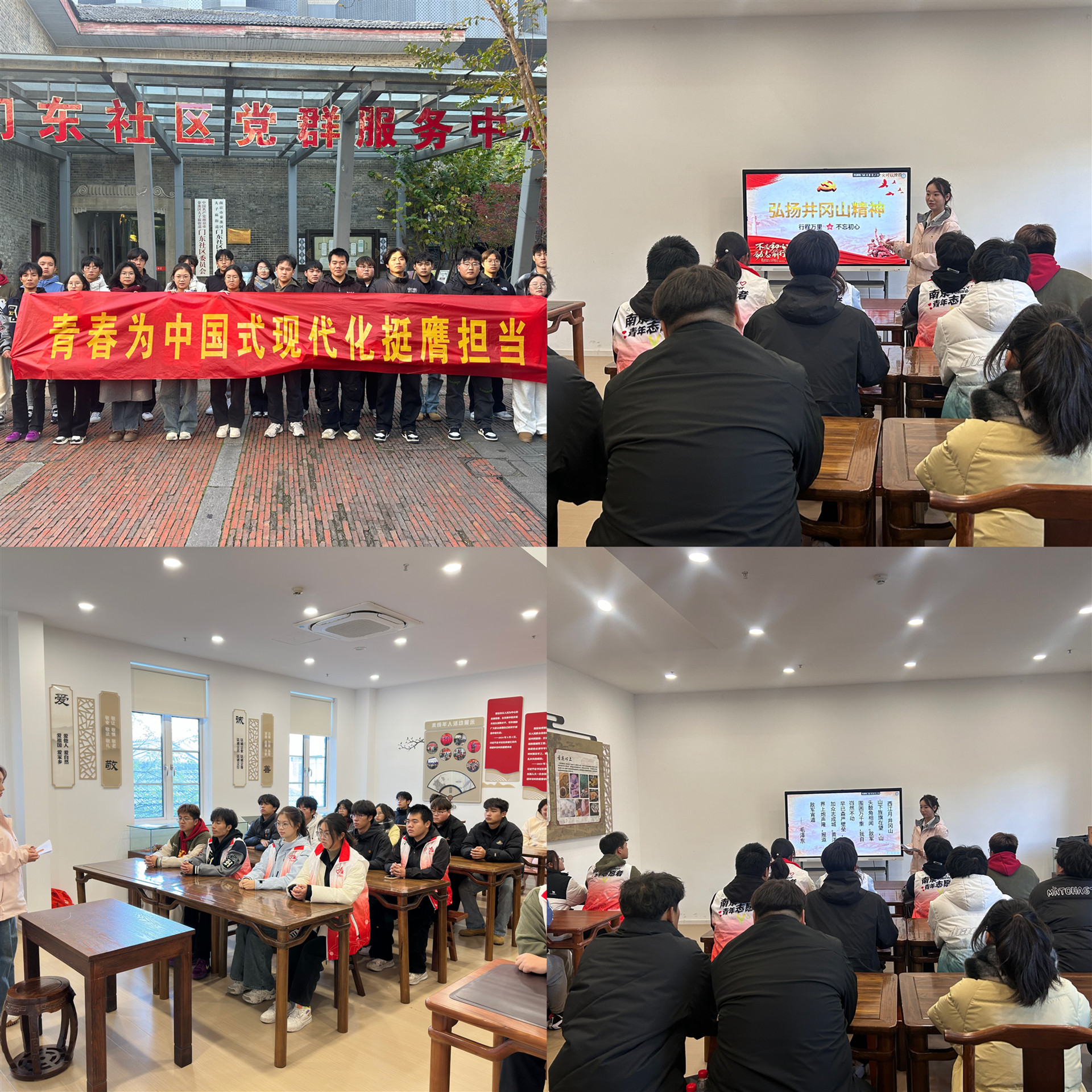 电子与信息技术系的理论宣讲小队走进了门东社区,为第24期新发展团员们带来了一场生动而深刻的“井冈山精神”宣讲活动。杨璐同学以毛泽东的《西江月·井冈山》为引子,通过解读词中的意境和背后的历史故事,引导学生们深入理解井冈山精神的内涵和精髓,这些生动的案例不仅让青年学子们更加直观地感受到了井冈山精神的伟大力量,更激发了他们内心的爱国热情与奋斗精神。