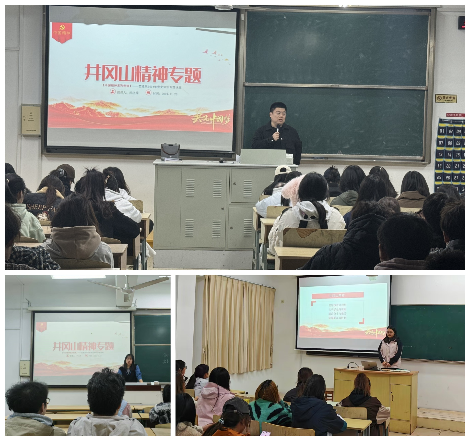 在辅导员的精心策划下,一场以“井冈山精神”为核心的学习活动在教室里热烈展开。辅导员运用详实的史料和生动的影像资料,将那段艰苦卓绝而充满激情的革命岁月栩栩如生地呈现在同学们面前,每一个故事都深刻揭示了井冈山精神的核心内涵。同学们在互动交流环节畅所欲言,纷纷探讨“井冈山精神”对当前学业、创新实践以及未来投身中国式现代化建设的指导意义。