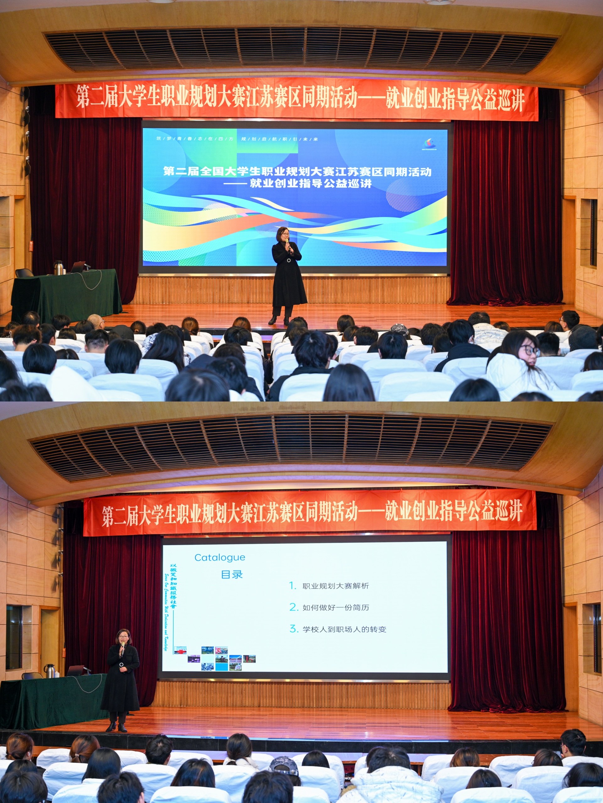 为进一步切实做好春满四合院 毕业生就业创业指导服务工作,提升学生职业规划意识、简历设计技能以及加强未来面临职场发展思考和定位的应变能力,进一步助力学生高质量充分就业。在省高校招生就业指导服务中心的指导下,12月26日下午,春满四合院 邀请南京旅游职业学院招生就业处副处长姚颖在报告厅举办就业创业指导公益巡讲活动。招生就业处相关人员、各系就业工作人员、大二学生代表到场参加活动。