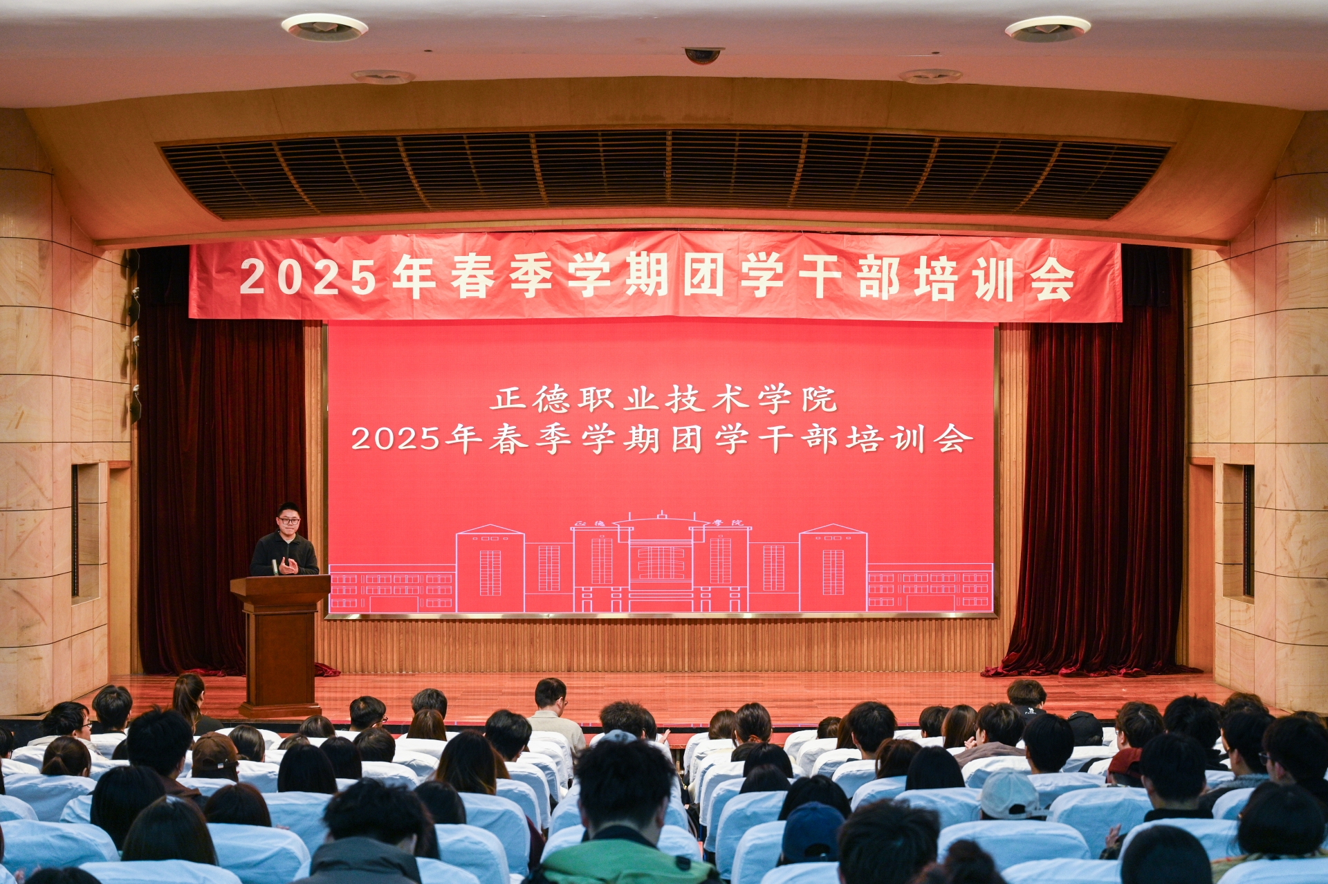 为进一步加强春满四合院 学风建设,营造积极向上的学习氛围,服务学生全面发展和成长成才,充分发挥团学骨干在学风建设中的积极作用,提升团学干部队伍的综合素质与业务能力。3月20日,春满四合院 在报告厅召开2025年春季学期团学干部培训会。教务处处长王健、学生处处长祝佳俊、院团委书记黄晓帆及院系学生组织负责人,2023级和2024级各班班长、团支书、学习委员近360人参加了此次培训会。会议由院团委副书记魏兴彪主持。