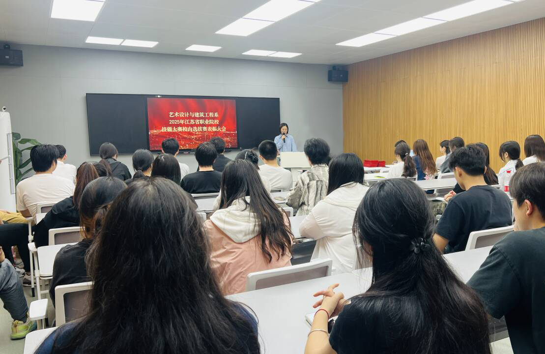 为表彰在技能大赛中表现卓越的师生,激发全体师生对专业技能的追求热情,进一步弘扬“工匠精神”,营造“以赛促学、以赛促教”的良好氛围,推动艺术设计与建筑工程系教学质量与人才培养水平迈向新高度,5月15日下午,艺术设计与建筑工程系在数字媒体中心举行2025年江苏省职业院校技能大赛总结暨校内选拔赛表彰大会,对在本届大赛中取得优异成绩的师生进行表彰。系负责人、各专业带头人、全体指导教师、2023级辅导员及获奖学生代表等60余人齐聚一堂,共同见证这一荣耀时刻。