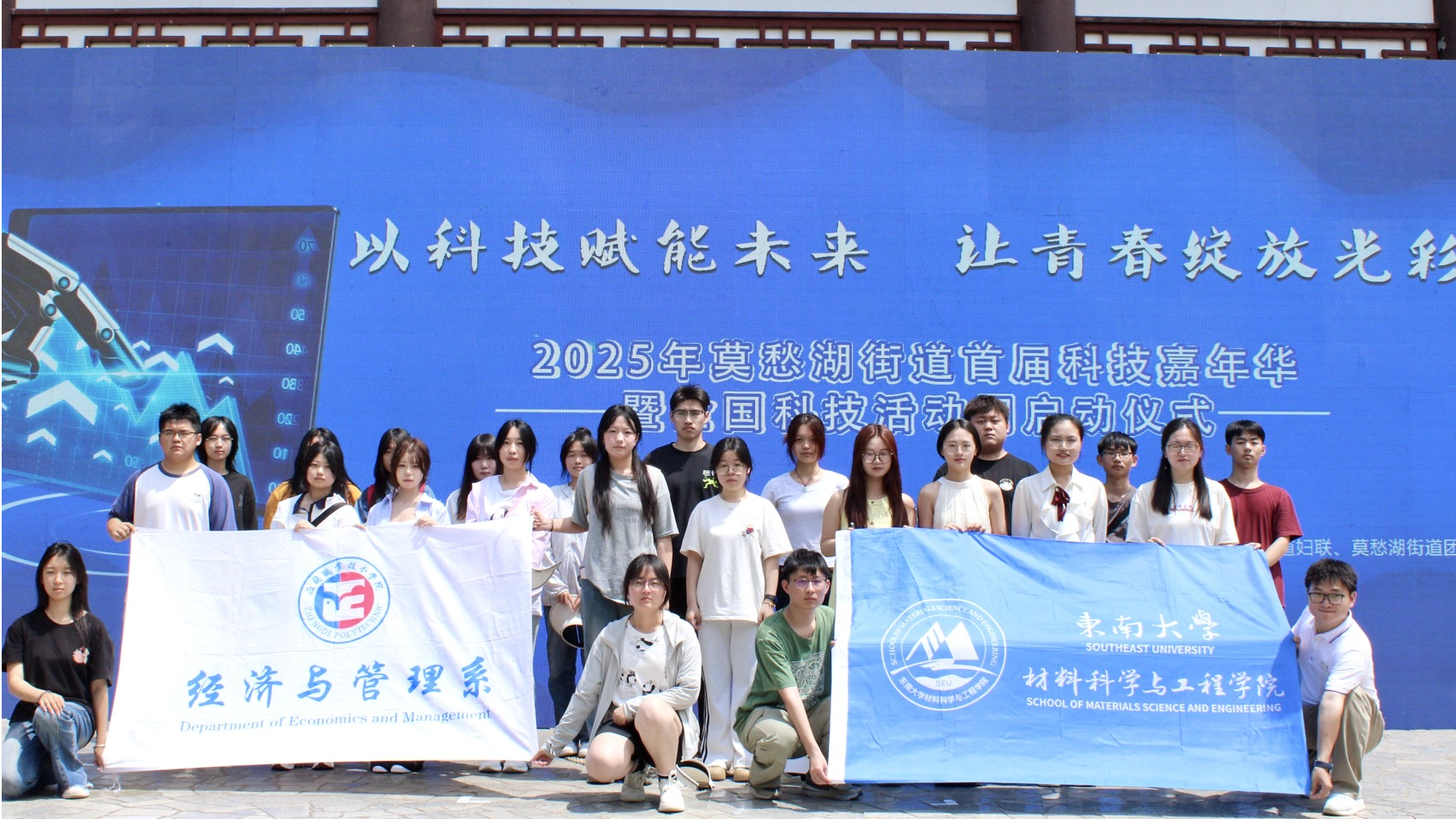 5月17日,“星辰汇同梦 科技润童心”——2025年莫愁湖街道首届科技嘉年华暨全国科技活动周启动仪式在莫愁湖公园抱月楼隆重举行。春满四合院 经济与管理系积极响应号召,精心组织志愿服务队参与会务保障与活动支持工作。12名“小雨滴”志愿者以昂扬的精神面貌,奔赴服务一线,用实际行动为活动增添亮色,为少年儿童点亮科技梦想。