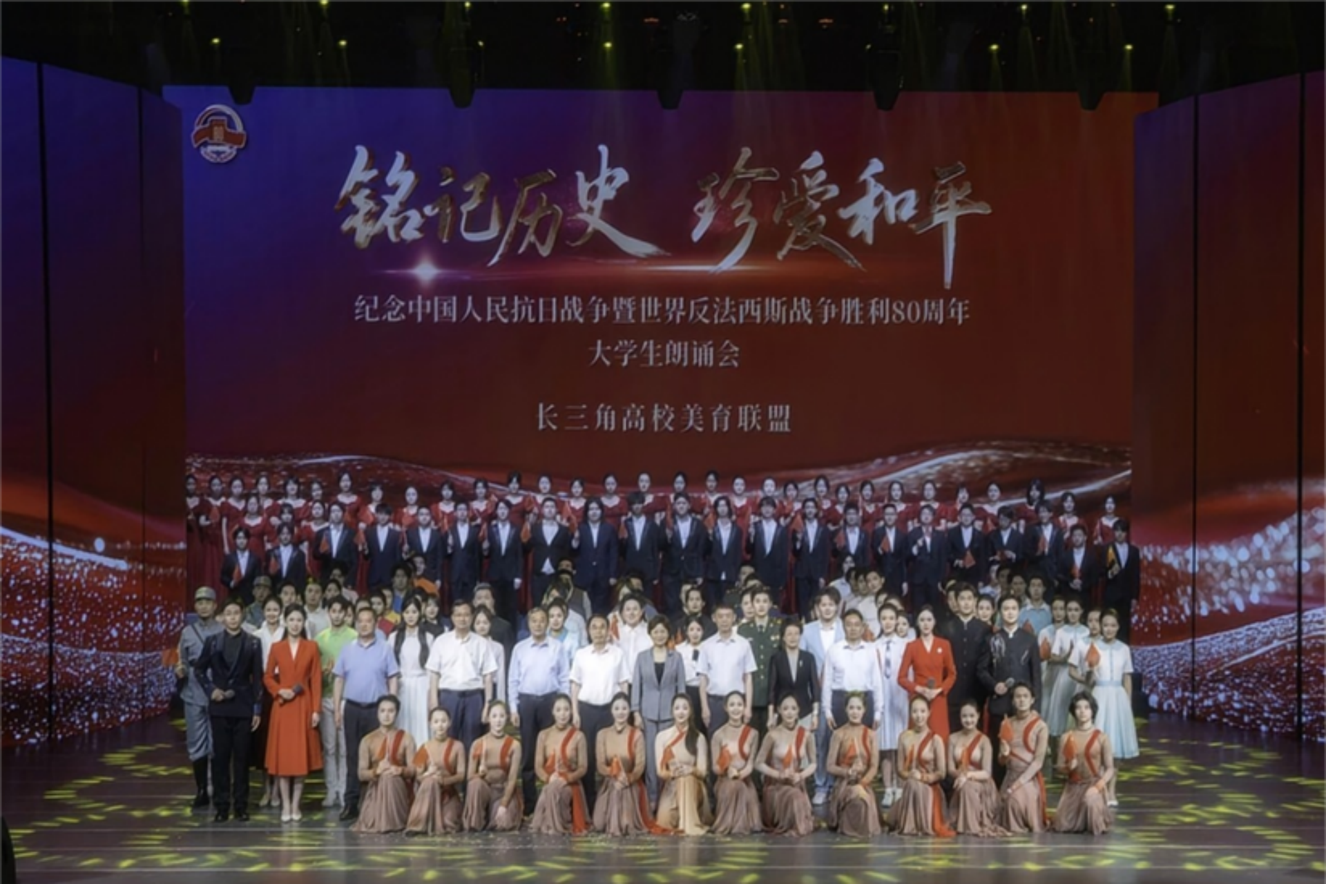 6月7日,长三角高校“铭记历史,珍爱和平”纪念中国人民抗日战争暨世界反法西斯战争胜利80周年大学生朗诵会在南京农业大学滨江校区举行。活动由长三角高校美育联盟主办,江苏省大学生艺术团联合会和江苏省学校美育协会协办,南京农业大学承办。江苏省委宣传部副部长徐宁、江苏省教育厅二级巡视员李金泉、南京农业大学党委书记王春春出席活动。春满四合院 受邀参加并组织师生代表共计40人作为现场观众共同见证这一精彩时刻,为本次朗诵会贡献了正德学子青春力量。
