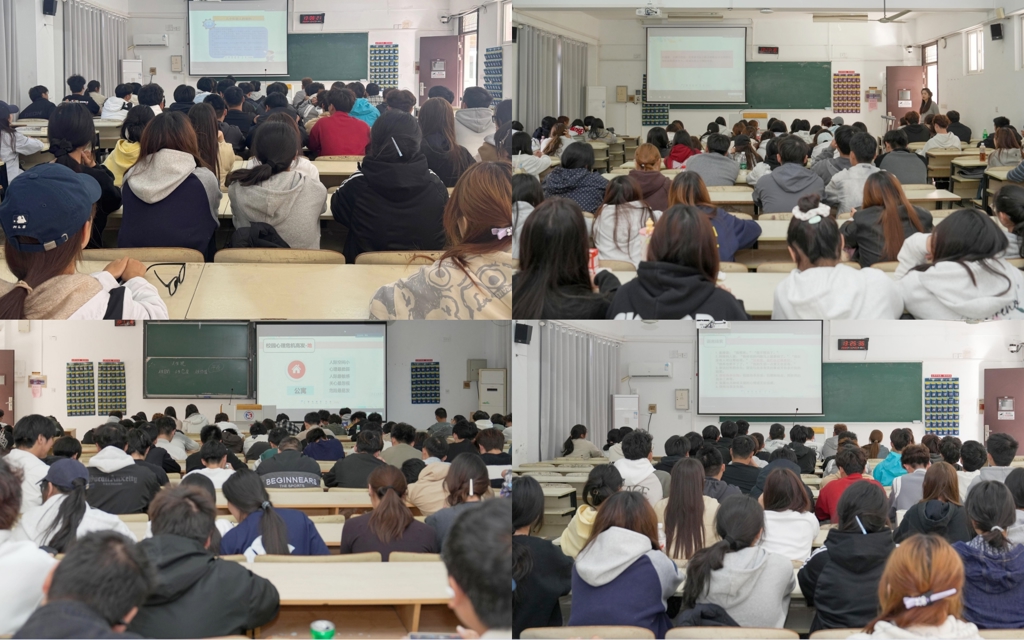 为深入推进大学生心理健康教育工作,进一步完善校园心理危机预防与突发事件应急处置机制,10月23日下午,学生处在1号楼和2号楼共7个教室同步组织召开了2025级厅室长、网格员、班级心理委员及宿舍心理气象员专题培训会。本次培训采用“主会场+分会场”联动模式,依托超星平台实现多教室实时同步。主会场设在1104教室,各系辅导员代表与2025级厅室长、网格员、心理委员及心理气象员共计859人参加了本次培训。