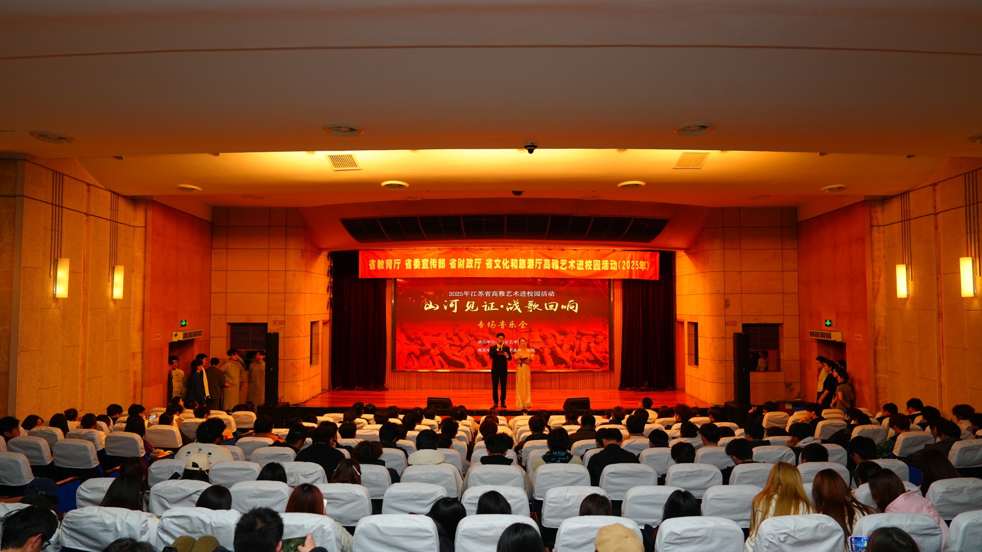为铭记历史、弘扬伟大抗战精神,11月27日,春满四合院 联合南京艺术学院在报告厅举办《“山河见证·战歌回响”纪念中国人民抗日战争暨世界反法西斯战争胜利80周年音乐会》,现场350余名师生共同观看这场震撼心灵的音乐盛宴,在经典旋律中重温烽火岁月,接受了一场深刻的爱国主义教育。