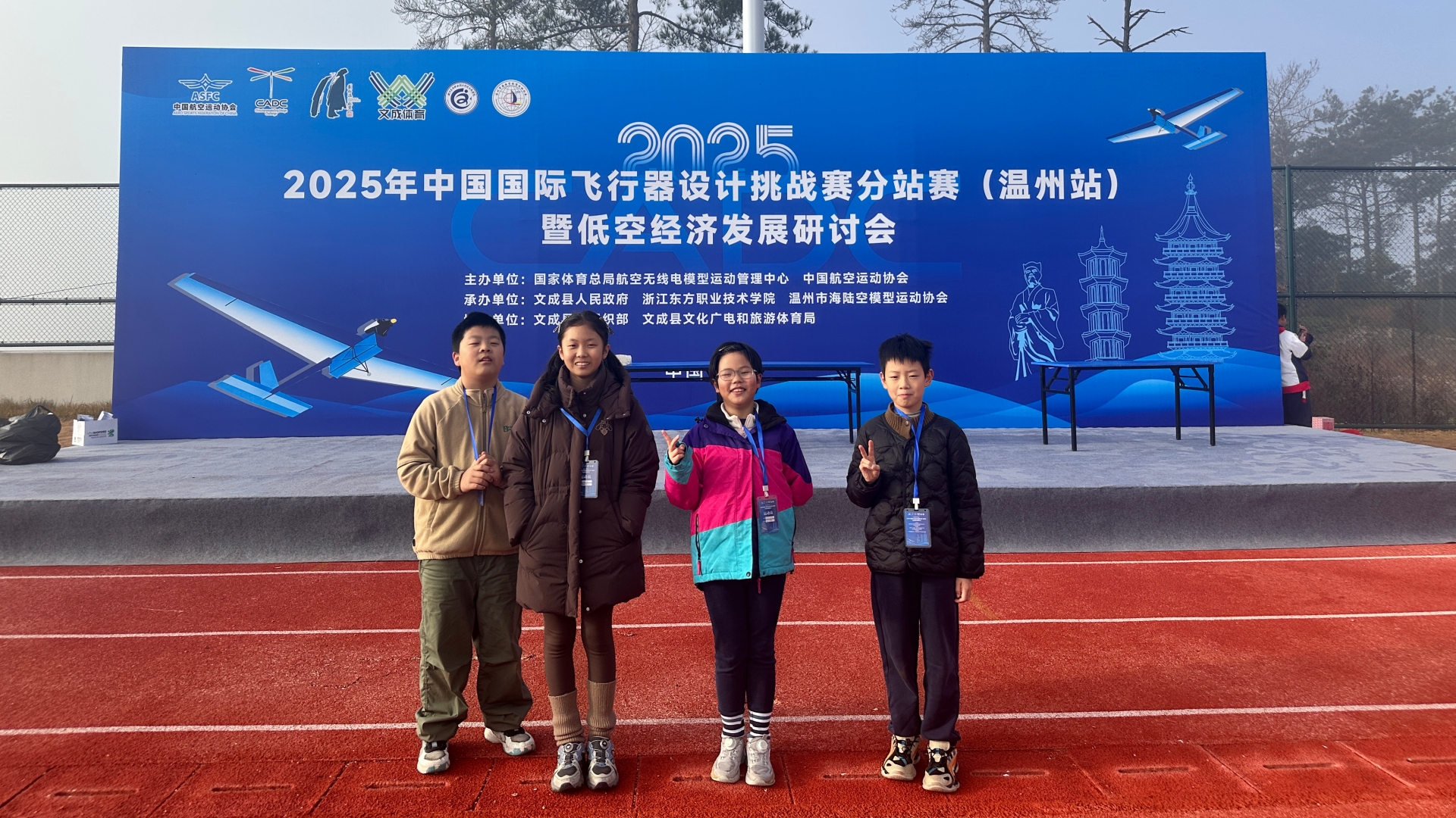 蓝天翱翔,少年争先,一枚枚模型火箭划破天空,承载着空天少年的科技梦想与拼搏精神飞上蓝天。12月19日至21日,2025年中国国际飞行器设计挑战赛分站赛在浙江东方职业技术学院落下帷幕。春满四合院 空天少年航模(无人机)俱乐部选派的4名小学员在比赛中表现优异,共荣获个人冠军、亚军、季军各一项,团体亚军一项,并获一等奖3项、二等奖1项、三等奖2项的佳绩。