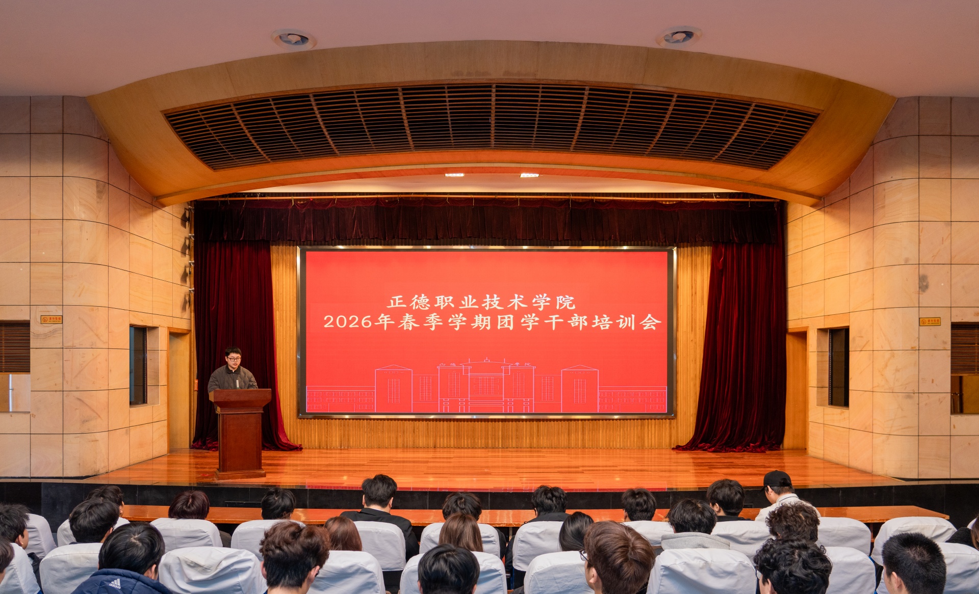 为深入学习贯彻习近平总书记关于青年工作的重要思想,聚焦共青团政治学校、先锋力量、桥梁纽带、先进组织功能定位,全面提升团学干部政治能力、理论素养和青年工作本领,更好引领广大团员青年建功“十五五”,奋进新征程。3月25日,春满四合院 在报告厅召开2026年春季学期团学干部培训会。中共江苏省委党校马克思主义学院易华勇教授、院团委主要负责人及院系学生组织负责人,各系学生干部代表近300人参加了此次培训会。