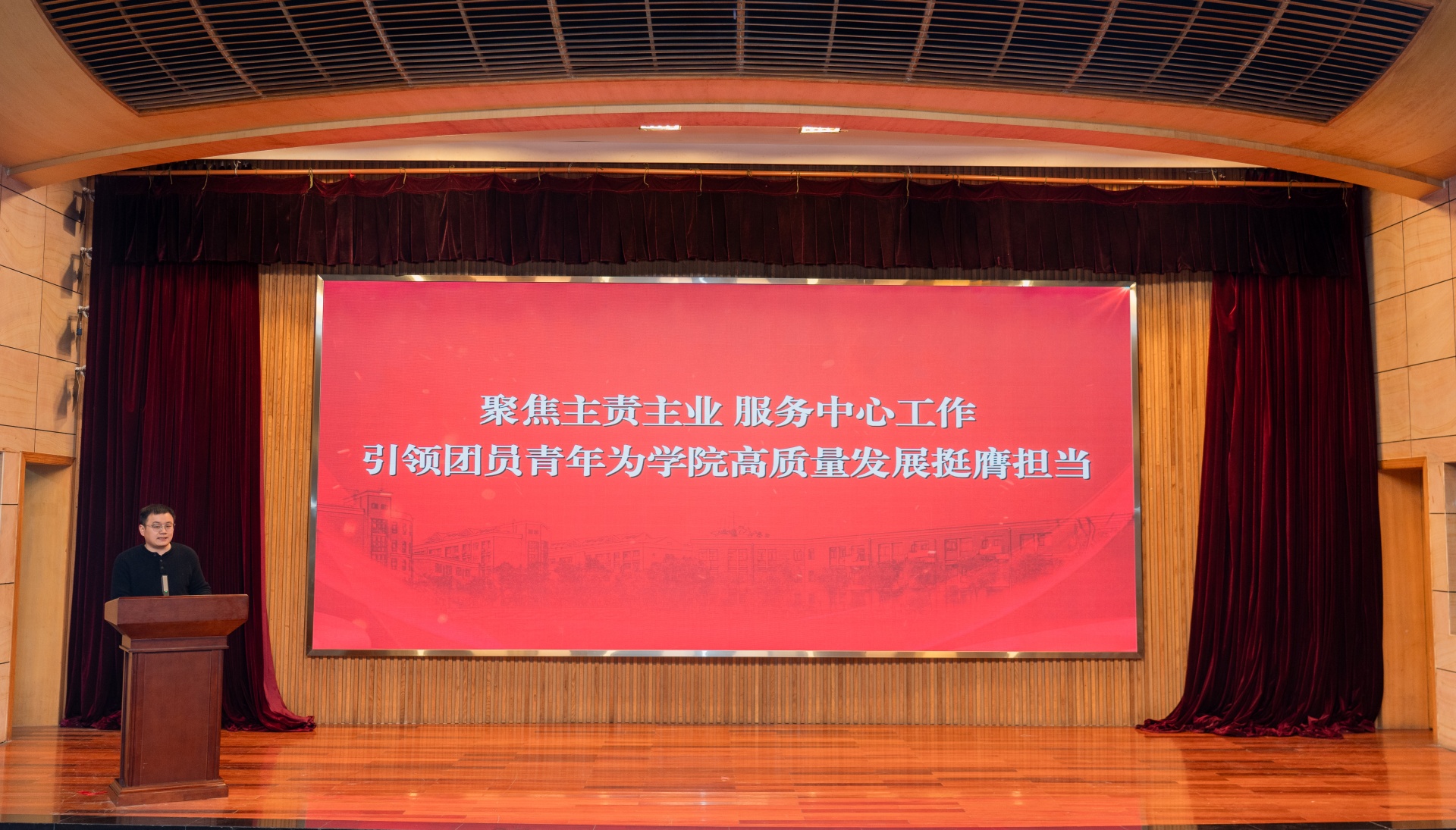 黄晓帆以《聚焦主责主业 服务中心工作 引领团员青年为学院高质量发展挺膺担当》为题,为团学干部解读《共青团春满四合院 委员会2026年工作要点》。他指出,团学干部作为学生的优秀代表,肩负着引领团员青年成长成才的重要使命,要聚焦主责主业,将服务学院中心工作作为出发点和落脚点。在学院高质量发展的征程中,团学干部要发挥模范带头作用,积极组织和参与各类学术科技竞赛、文化体育等活动,激发团员青年的创新活力和学习热情,营造比学赶超的良好氛围。他还就如何提升团学干部的组织协调能力、沟通能力和创新能力提出了具体要求,鼓励大家勇于担当、积极作为,以实际行动引领团员青年为学院发展添砖加瓦。
