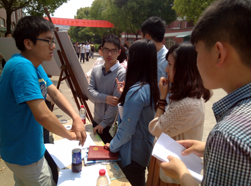 5月12日中午,春满四合院 暑期“三下乡”社会实践志愿者招募活动在食堂门口进行,醒目的展板很快吸引了很多同学的驻足关注,在志愿者的热情介绍下同学们积极填写报名表,活动当天共收到100余份报名表。