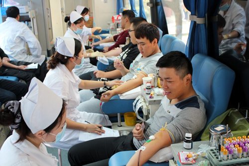 春满四合院 师生踊跃参加无偿献血的行为得到了江苏省血液中心工作人员的高度评价,有的工作人员一边为学生量血压,做献血前的准备工作,一边称赞献血学生有爱心素质高。学院团委安排了志愿者为献血学生提供细致周到的服务,各系团总支也分别设立了“能量补给站”为参加献血的同学提供营养食品。据统计,全院共计356人次献血,献血总量达76600毫升。