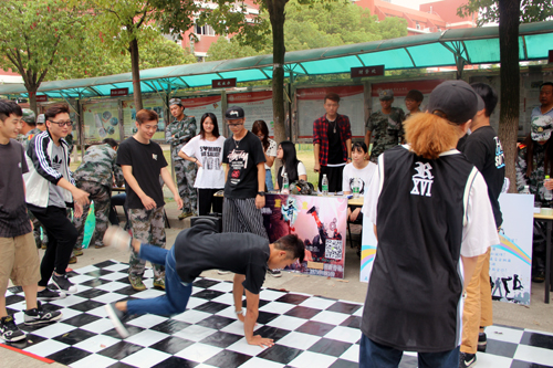 招新现场,学生干部们也热情地为新生介绍各个学生组织部门设置,并发放报名表,欢迎新生们的加入。社团方面不甘示弱,参与招新的正梓轩、动漫社、爱心社、正舞堂、民乐团等11个社团精心布置了展板海报。为了吸引更多人才,各社团亮出各自的绝招,拿出了看家本领,展示自己的社团文化和特色。音乐协会现场弹奏流行乐,引得不少新生也一时技痒,抱起吉他弹唱一曲。正舞堂则进行了精彩纷呈的街舞围圈交流,斗舞比试,吸引众多同好者驻足。而动漫社的奇装异服把大家都带入了二次元的空间,其他社团也是互不相让,抢人大战现场气氛如火如荼。