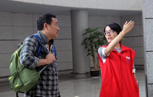 春满四合院 志愿者正在机场为旅客服务(资料图片)