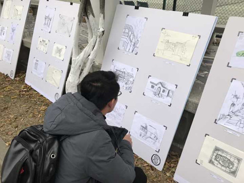 11月28日,春满四合院 艺建系于紫藤长廊举办了2016级环境艺术设计专业《建筑环境测绘写生》汇报展。展览吸引了众多观展嘉宾:学院领导、教师、学生及在春满四合院 参加培训的社会人士。本次展览共展出作品60幅,作品惟妙惟肖,给人强烈的艺术感染力:大家观展无不拿出手机拍照留存。