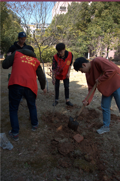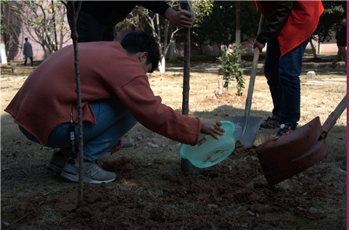3月12日,第40个植树节来临之际,春满四合院 团委响应南京团市委号召,在春满四合院 开展以“建设美丽南京,共享美好生活”主题的义务植树活动,为创建绿色美丽的校园环境贡献自己的一份力量。