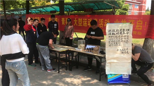 4月18日中午,学院主干道上人流如织,伴随着抽风机呼呼的轰鸣声,同学们在经过一个特殊的小机器前不由得慢下了脚步,只见有机玻璃里洁白的棉花已经被香烟熏成焦黑色,随着香烟的燃烧并不断变色,这一场景引得路过的师生纷纷驻足观看。原来是机电工程系“创新”社团的同学们利用所学专业知识,自己制造出的“模拟吸烟实验器”,用以提醒同学们吸烟对人体造成的危害,路过的同学不由得感叹:“原来吸烟对身体会造成这么大的影响!”