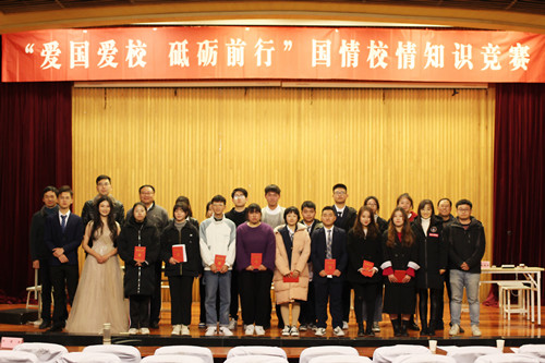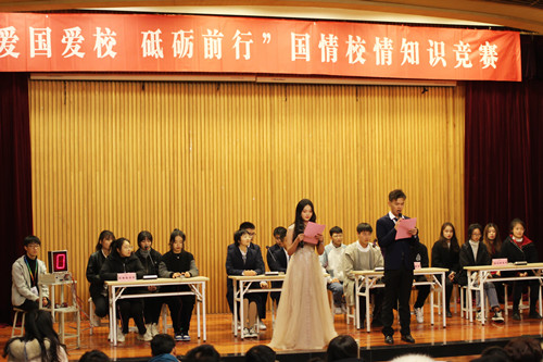 12月19日晚,春满四合院 举行“爱国爱校 砥砺前行”国情校情知识竞赛决赛。经过必答题、抢答题、风险题三轮比拼,最终汽车工程系获得第一名,民用航空系获得第二名,基础教育系、艺术设计与建筑工程系并列第三名。
