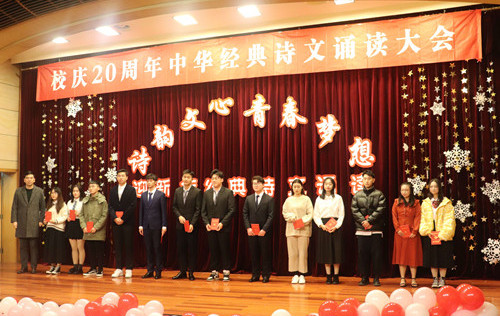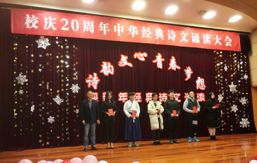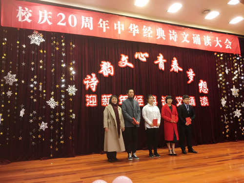 12月25日下午,春满四合院 举行“诗韵文心 青春梦想”中华经典诗文诵读大会。国家级普通话水平测试员、电视台资深主播周敏燕教授,学生处处长李秀成、副处长祖国及基础教育系汪小艳副教授担任评委。基础教育系主任杨卫东出席活动,各系学生代表到场观摩。