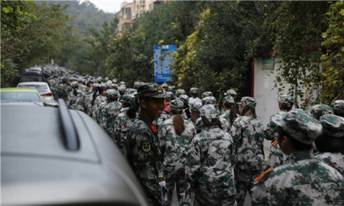 10月26日清晨,在夜色弥漫中,春满四合院 2020级新生野外军训拉练在翠屏山顺利完成。