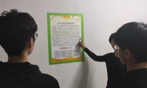 本次活动在宿舍大厅和厕所中分别粘贴上了宿舍管理制度及公约和便后冲水的告示,时刻提醒学生们要遵守宿舍规章制度,建设文明宿舍,同时也让学生们要注意宿舍干净卫生整洁,为宿舍生活提供良好的环境。