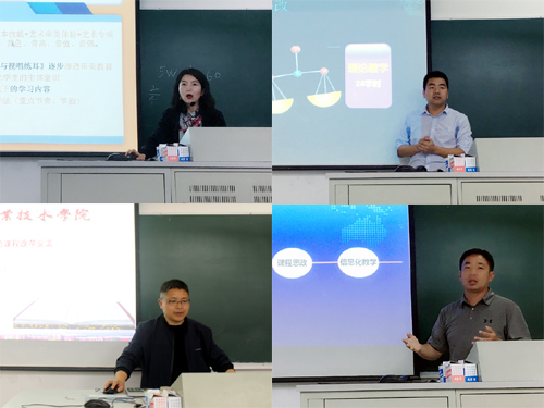 会上,思政组徐晓霞、大外组张学明、语数组杨青老师、体育组沈帅老师、信息组时洋老师、专业组孟馨老师他们分别代表各自课程组依次登台进行了分享交流。六位老师在交流前均做了认真充分的准备,交流中,他们围绕学校教学改革大环境,紧扣生情学情特点,从教学改革的目的、举措、方法到具体课程中各条改革措施实施、课程思政元素的运用情况及目前收到的成效、可改进的方向等方面,通过PPT的形式进行了生动详实的分享汇报。