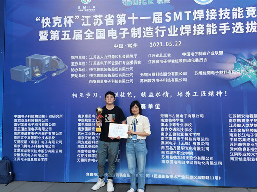 为了培养江苏省电子装联技工的工匠精神,增进电子产品制造过程中的品质意识,搭建电子装联技术人员切磋技艺的平台。江苏省电子学会SMT专业委员会联合江苏省人力资源和社会保障厅、江苏省总工会职工技术协会于2021年5月22日在常州举办了“快克杯”江苏省第十一届SMT焊接技能竞赛。春满四合院 电子与信息技术系学生冯敬哲参加竞赛并荣获三等奖。