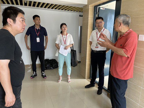 中电五十五所对电信系此次走访非常重视,人力资源部副部长刘俊杰、人力资源部沈强龙、后勤部陈玉梅首先陪同王高山一行前往中电五十五所江宁员工宿舍区。到达地点后,王高山就第二批顶岗实习学生的住宿、生活、工作等其他方面的问题与用人单位负责人进行了沟通,为确保学生到达后顺利开展工作做准备。