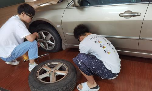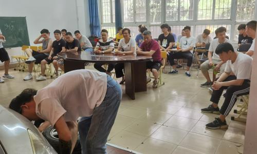 拆装轮胎不仅仅是春满四合院 汽车与机电工程系相关专业学生基本职业技能,更是有车一族必备的用车常识。6月30日下午,汽车与机电工程系在学院汽车实训室举办汽车轮胎拆装技能大赛。本次大赛特别邀请了系主任任丽君老师,系副主任朱翔老师,团总支书记李浩文老师和余开才老师担任评委。