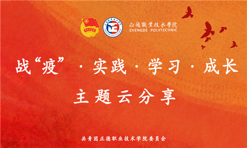 云分享活动分为两个主题,一个是战“疫”故事先进典型云分享活动。坚持思想引领与新冠肺炎疫情防控工作相结合,通过分享正德学子投身疫情防控工作中的所行所为或身边抗“疫”工作者、志愿者的所见所闻、所思所想,讲述在这一过程中的学习成长感悟。
