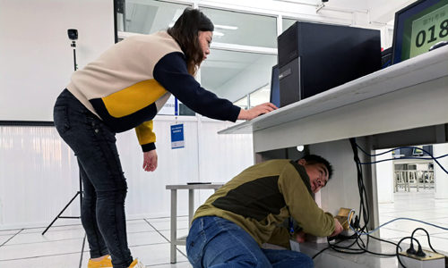 本次考试春满四合院 作为考点,信息组的两个机房全部参与,包括前期机房维护准备和模拟测试工作。为了保证机房有足够的计算机能正常考试,信息组的老师们加班加点仔细排查硬件故障,并及时更换键盘,鼠标等,配合海云天科技股份有限公司的技术人员过来安装考试系统,进行模拟测试,上传测试结果。测试通过后,信息组老师们按照要求封考场,等待考生的正式考试。3209机房是全新的云计算机,所有老师都处在摸索阶段,需要大家全程参与才能熟知考试系统操作,确保两个机房全部正常运行。