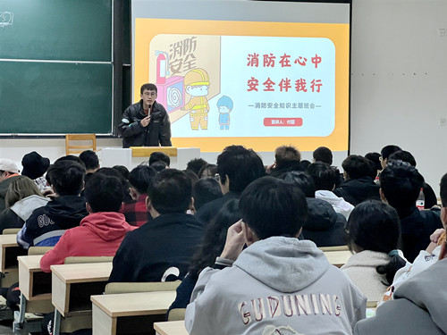 本次讲座由电信系辅导员付磊为2021级新生进行讲解(付磊曾担任上海市浦东新区公安消防支队周渡中队战斗员、文书,参与靖江化工厂爆炸、阜宁十级龙卷风等重特大灭火救援战斗)。讲座结合近几年全国发生的火灾案例,以视频和图文相结合的方式生动阐述了普及消防安全知识的紧迫性和重要性,以此来敲响消防安全的警钟。同时,付磊就防火、灭火、逃生、自救四个方面进行了重点阐述,并介绍了火灾的形成过程、火场中易出现延误逃生时机的误区、自救逃生的方法以及灭火器的使用方法等一系列消防安全知识。整场讲座内容生动,发人深省,在场学生认真倾听,纷纷表示要多学习消防安全知识,加强责任意识,平时注意用火、用电安全,从身边小事做起,防患于未然。